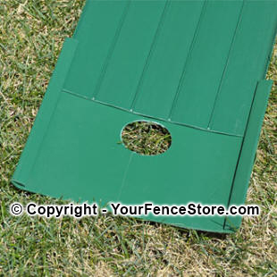 Cut from the side to the middle of the intersection. This is done so it can be installed around the posts. If your posts are installed but the chain link has not been installed yet, you can slide the mowstrip connector down over the post eliminating the need to cut it.