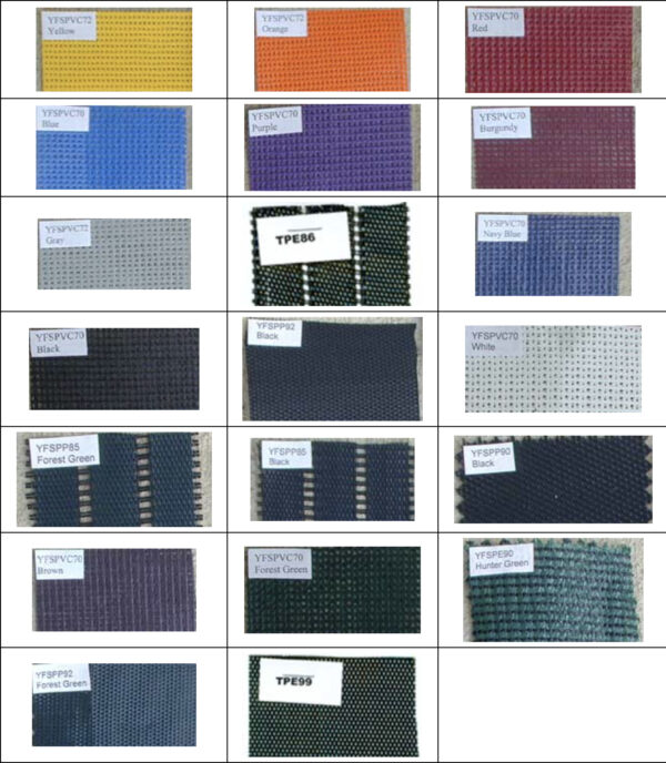 | Color | Yellow, Orange, Red, Forest Green, Kelly Green, Royal Blue, Navy Blue, Carolina Blue, Maroon, Purple, Brown, Black, Gray, White, Tan, Hunter Green, Maple Green, Sky Blue |