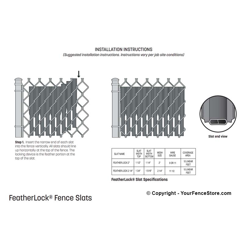 Specifications: the Feather Lock slat is manufactured 1-1/2″ shorter than the overall height of the fence (e.g. 6 ft is 70.5″ long).